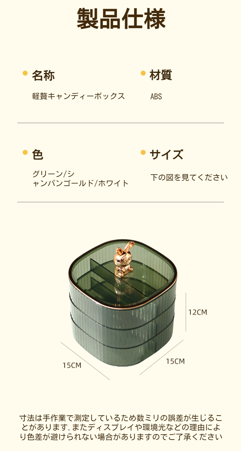 クリームゴールドラビットデザインのキャンディボックス