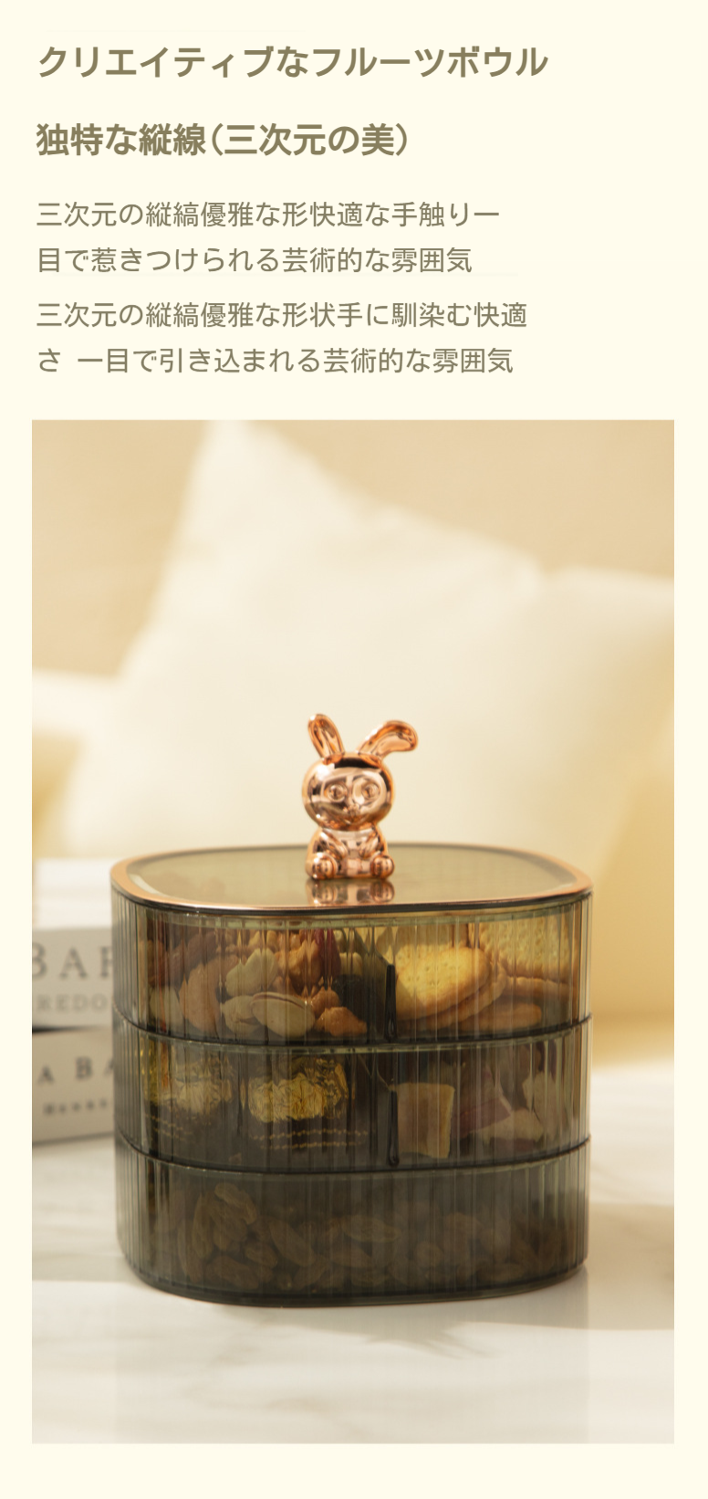 リビングルーム用ラグジュアリー多層フルーツプレート正面画像